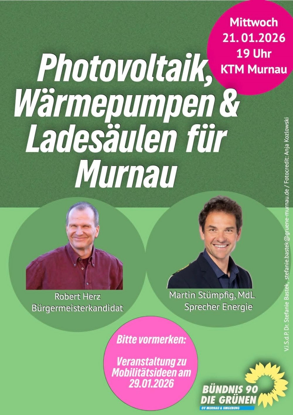 Spannende Informationen des energiepolitischen Sprechers der Landtagsfraktion: Martin Stümpfig kommt nach Murnau. Mit Bürgermeisterkandidat Robert Herz.