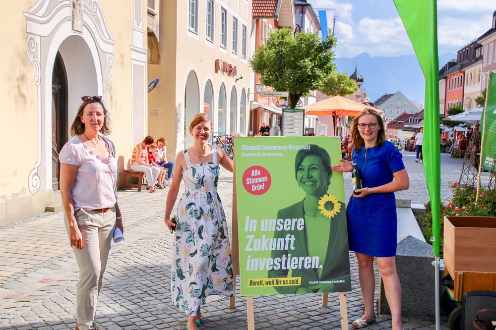 Am 5. September Lisa Badum zusammen mit unserer lokalen Direktkandidatin Elisabeth Löwenbourg-Brzezinski zunächst bei `Wir Fürs Klima´ in der Murnauer Fußgängerzone an der Mariensäule zu Gast und anschließend bei einer Abendveranstaltung zusammen mit Cartias, German Zero und Energiewende Oberland in der Konzertmuschel im Kulturpark Murnau.