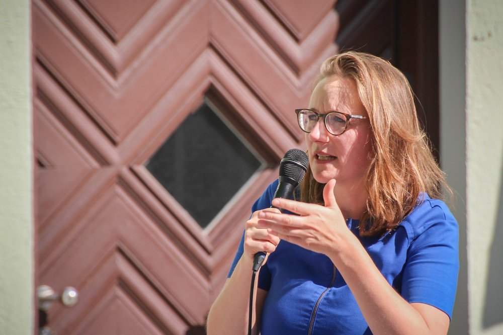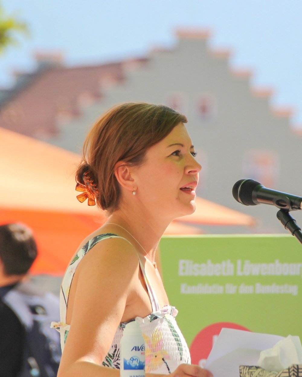 Foto 2: Lisa Badum spircht in der Konzertmuschel - Foto: © Lukas Niggel