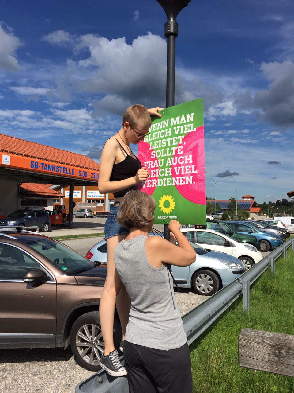 Fleißiger Einsatz im Bundestagswahlkampf: Grüne Jugend des Kreises mit Sprecherin beim Verbreiten unserer Botschaften.