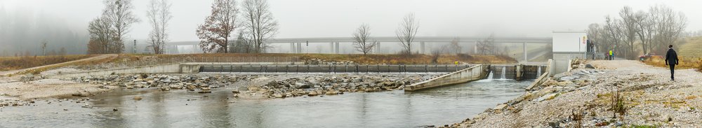 Bürgermeister Frank Bauer stellte für einen Kurzvortrag über die theoretischen Grundlagen den Sitzungssaal zur Verfügung. Der „Vater“ des Kraftwerkes, Diplomingenieur Albert Sepp, schilderte die Entstehungsgeschichte. Die Idee für diesen neuen Kraftwerkstypus wurde 2010 geboren. Die Stromerzeugung findet in einem Schacht unter Wasser statt. Dort befindet sich eine Tauchturbine und der Generator. Regelmäßig wird das darüber liegende Gitter vom Geschiebe befreit. Sand geht durch die Turbine ab. Fische können flussabwärts das Kraftwerk sicher überwinden, flussaufwärts gibt es an beiden Seiten der Loisach eine Fischtreppe.  Die TU München erforschte die notwendige Technik in der Versuchsanstalt für Wasserbau in Obernach. Bis zur Inbetriebnahme dauerte es aber noch bis Januar 2020.