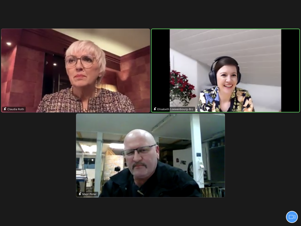 Doch auf diesem Frühlingsempfang wollten wir nicht nur Politiker*innen zu Wort kommen lassen, sondern auch Kunst & Kultur eine Bühne bieten und Künstler*innen aus unserer Region direkt zu Wort kommen und ins Gespräch mit der Politik bringen. Stellvertretend durften wir dazu Chiara Nassauer-Boitsos vom, Schauspielerin, Regisseurin und Autorin vom Zimmertheater Uffing und Peter Mayr, freischaffenden Künstler aus Peiting, begrüßen.