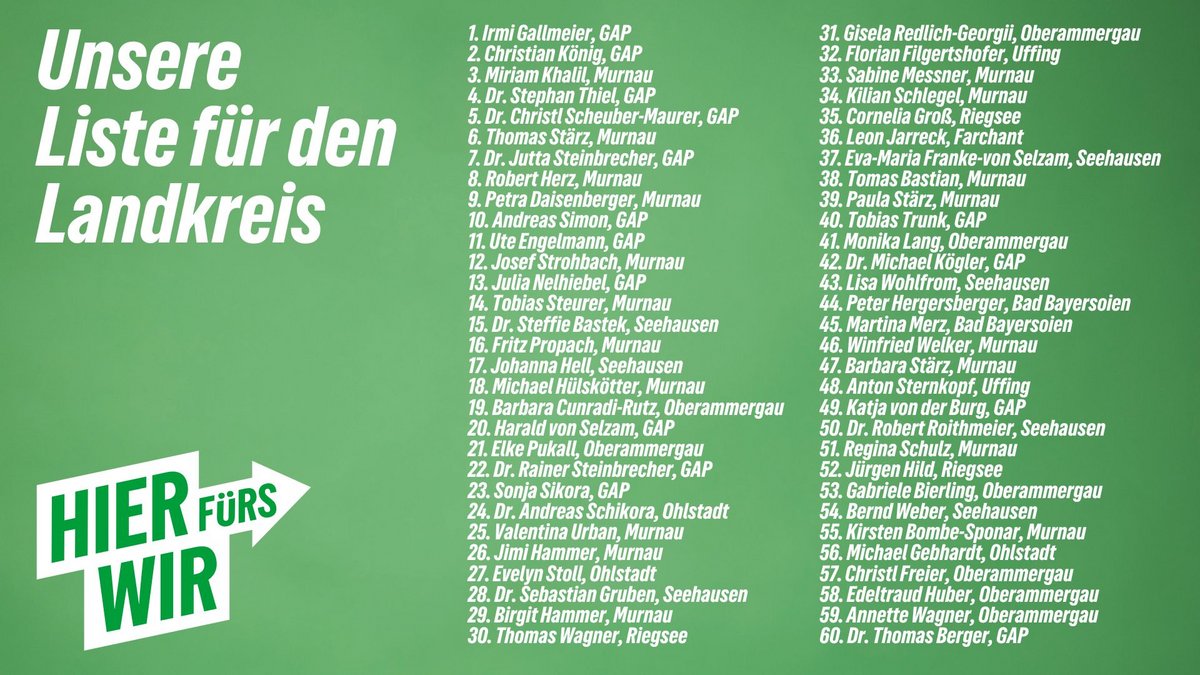 seit 1984 dürfen wir GRÜNE im Kreistag die Politik im Landkreis Garmisch-Partenkirchen gestalten. Wir setzen uns ein für unsere natürlichen Lebensgrundlagen und wunderschöne Natur, gute Bildung, verlässliche Gesundheitsversorgung, ein tragfähiges soziales Netz sowie nachhaltige Mobilität. Mit Ihrer Stimme können wir uns weiterhin für gutes Leben in unserer Heimat stark machen.