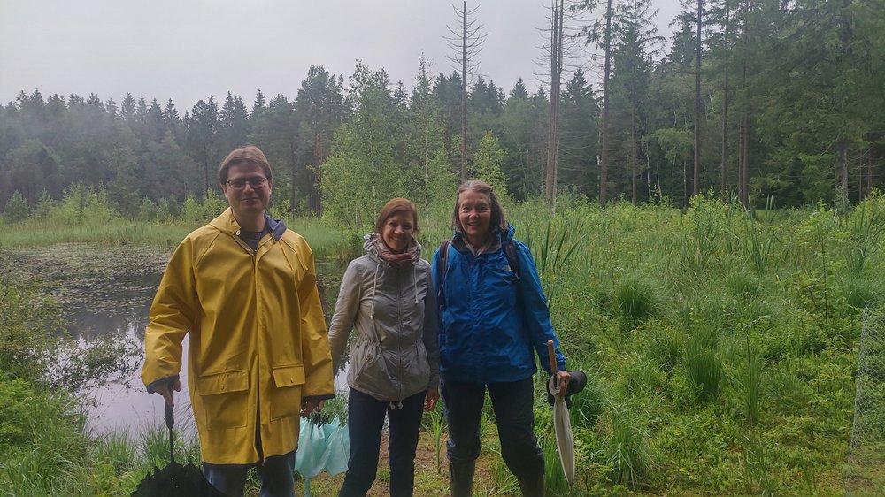 Am Sonntag, den 18.7.21, hatten rund 30 Interessierte die Gelegenheit, an einer Führung durch das Naturschutzgebiet Schwarzlaichmoor bei Peiting teilzunehmen, die vom vom Grünen Ortsverband Peiting initiiert wurde. Während einer rund 3-stündigen Wanderung im Dauerregen durch das Naturschutzgebiet verdeutlichte der ehemalige Bund-Naturschutz-Vorsitzende Peiting-Schongau und Klimaforscher Thomas Elste die umfangreichen, von Hand und mit Maschinen durchgeführten Anstaumaßnahmen im Schwarzlaichmoor, die zu einer großräumigen Wiedervernässung des Hochmoores maßgeblich beigetragen haben. Somit kann dort wieder CO2 gebunden werden. Im intakten Hochmoor gedeihen nun wieder selten Pflanzenarten wie die Zwergbirke, ein Eiszeitrelikt, das hier ihr größtes Vorkommen in Süddeutschland hat. Inzwischen hat der Biber weitere Anstaumaßnahmen übernommen und aufgezeigt, wie eine geschützte Natur sich selbst zum Nulltarif reguliert.